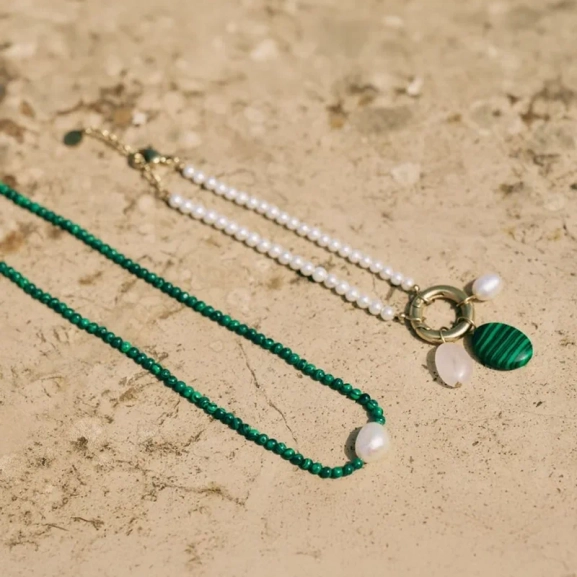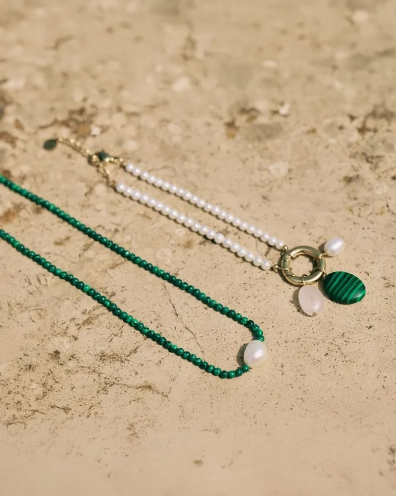 • Sten: Sötvattenpärla, Rosenkvarts, Grön Malakit