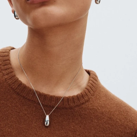 En elegant form i kombinerade metaller utgör basen för Harmony. I detta halsband av polerat rostfritt stål löper kedjan genom den droppformade designen.