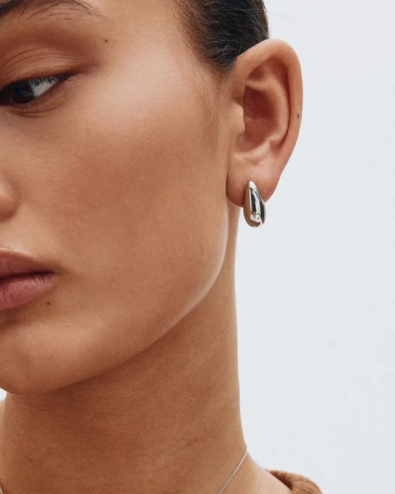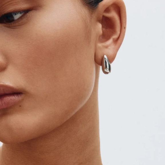En elegant form i kombinerade metaller utgör basen för Harmony. I denna version, tillverkad i polerat rostfritt stål, är formen mjukt böjd och vilar vackert mot örat.