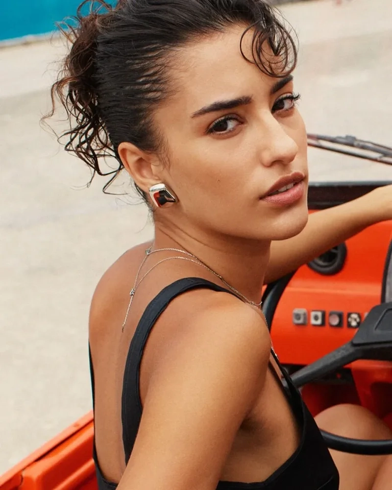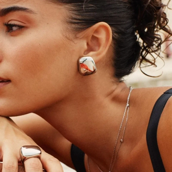Mira Studs L Steel, där mjuka och hårda element förenas i en harmonisk design. De större örhängena, tillverkade i blankt rostfritt stål, erbjuder en spegelblank yta och en subtil välvning som fångar ljuset på ett unikt sätt. Dessa smycken ger en sofistikerad och modern känsla, perfekt för att förhöja din stil och ge en distinkt karaktär till varje tillfälle. Låt Mira-örhängena bli en del av din personliga uttryck och förmedla en tidlös skönhet.