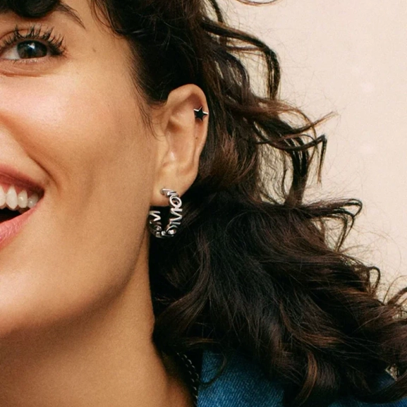 Edblad presenterar Statementserien MOM, en varm hyllning till alla mödrar. De eleganta hoopsen, tillverkade i glänsande rostfritt stål, formar ett lekfullt grafiskt mönster som kan uppfattas som MOM eller WOW, beroende på stil och perspektiv. En idealisk gåva till en älskad mamma.