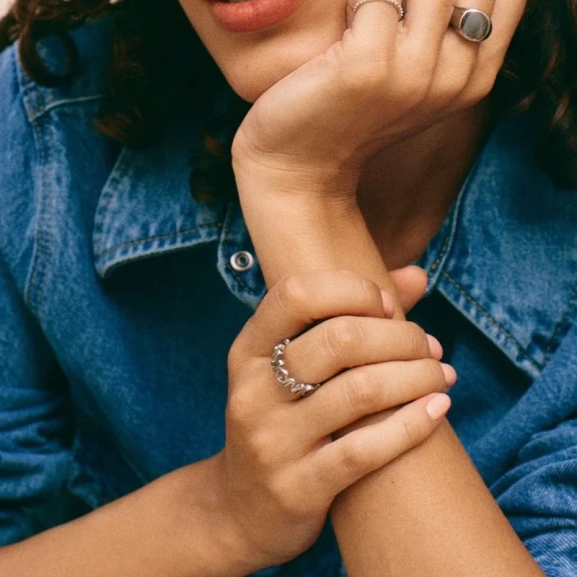 Edblad presenterar Statementserien MOM, en varm hyllning till alla mödrar. Denna ring, tillverkad i glänsande rostfritt stål, bär en djärv och självsäker stil. Med sitt lekfulla grafiska mönster kan den läsas som MOM eller WOW, beroende på din känsla. En idealisk gåva till en älskad mamma.