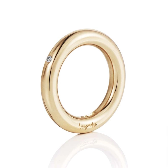 Med sitt mjuka formspråk och briljantslipade diamant i skenan är denna 18k guldring både diskret och uttrycksfull. En kärleksfull gåva – perfekt som morgongåva eller till jubileum.