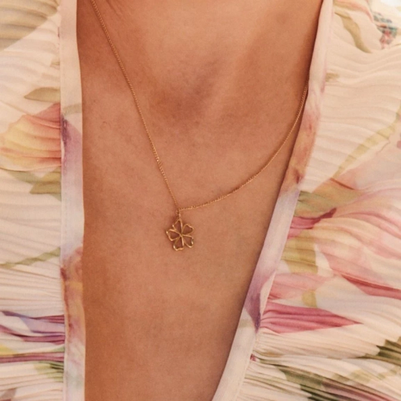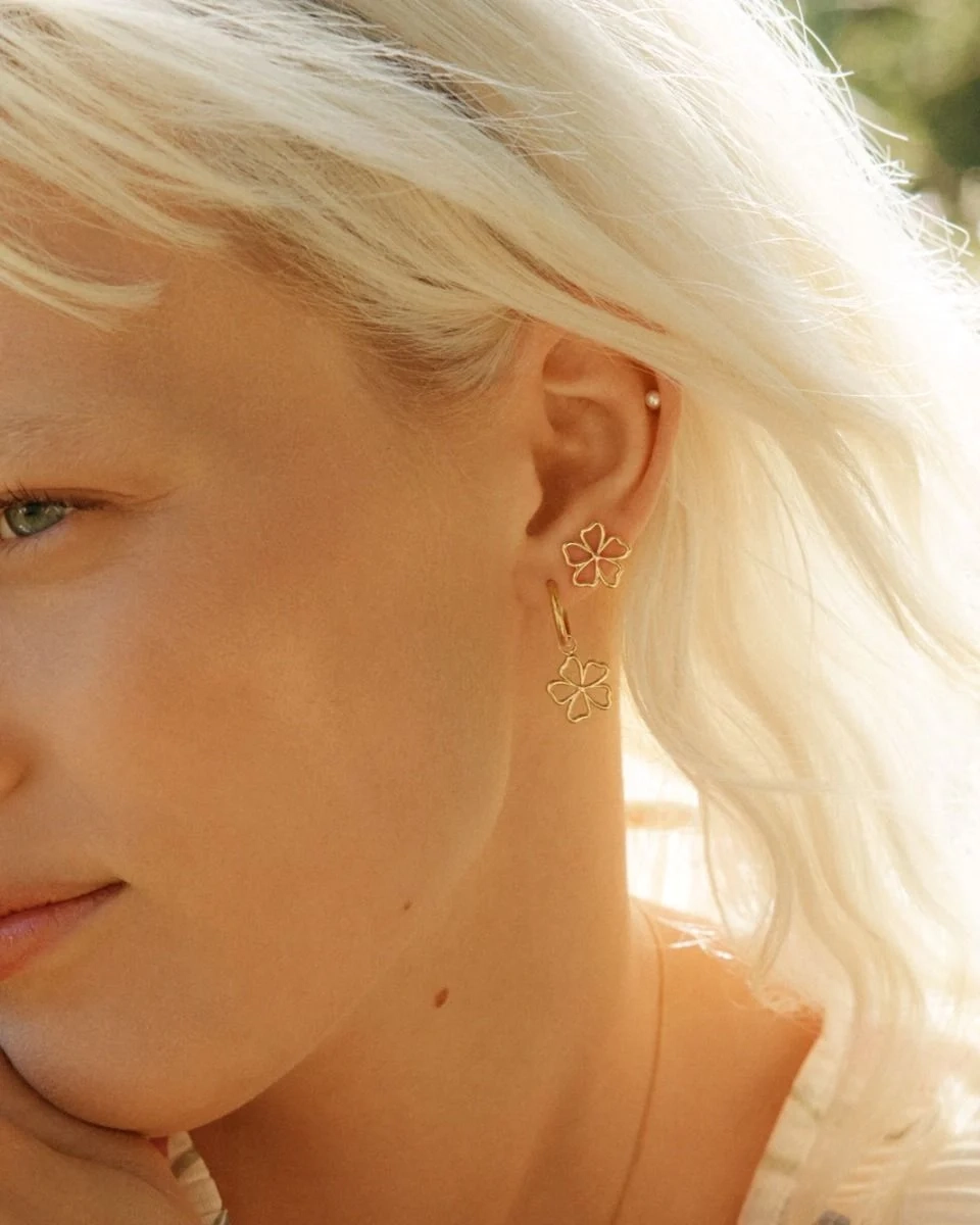 Alba i guldton ger ett varmt och elegant uttryck med sin karakteristiska utskurna blomma. Ett fint val när du vill addera en mjuk lyster till din vardagsstil och bära något som känns både enkelt och genomtänkt.