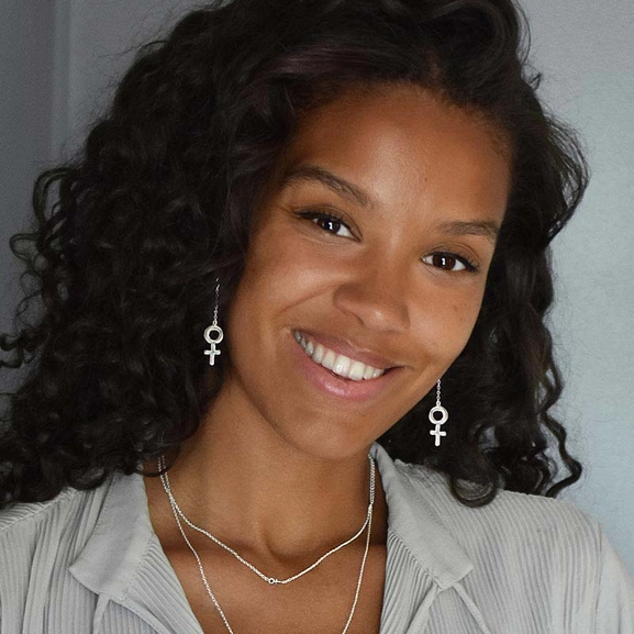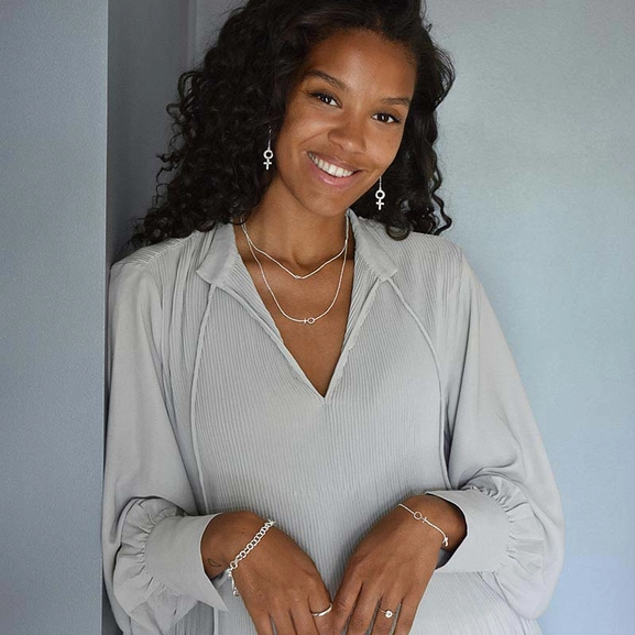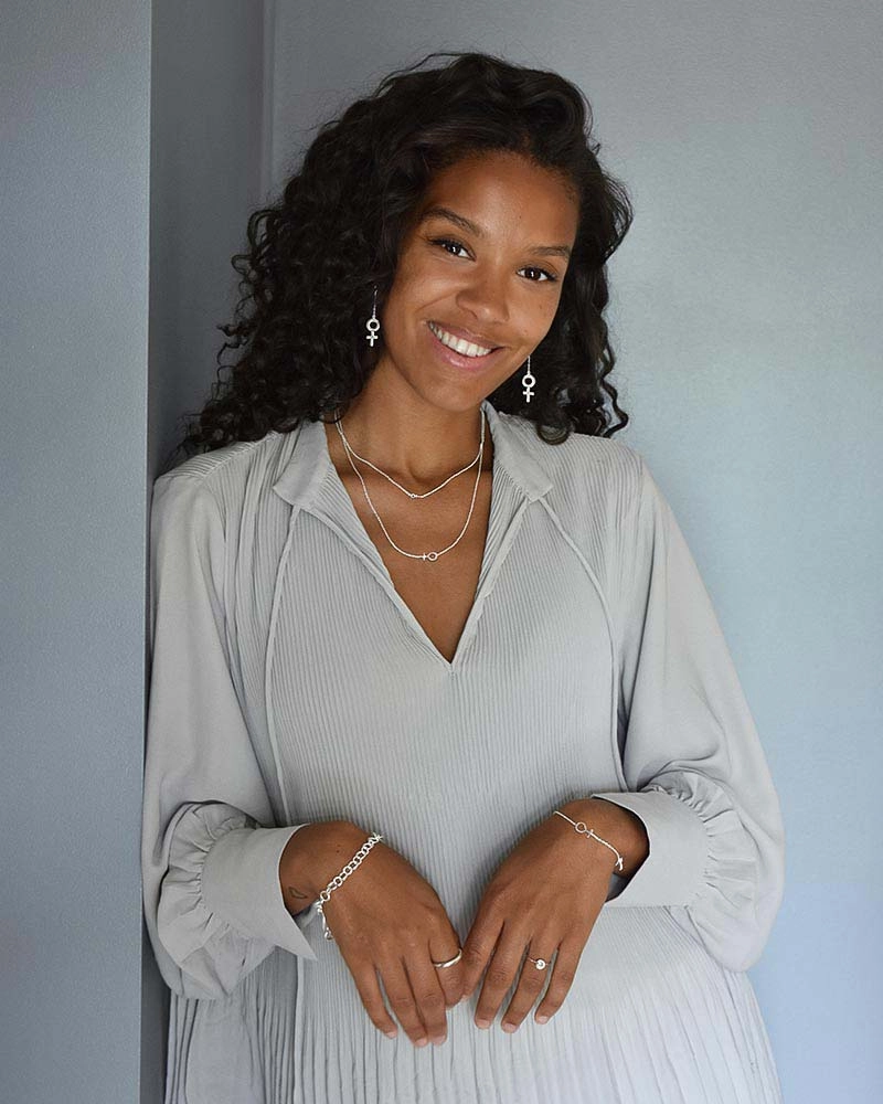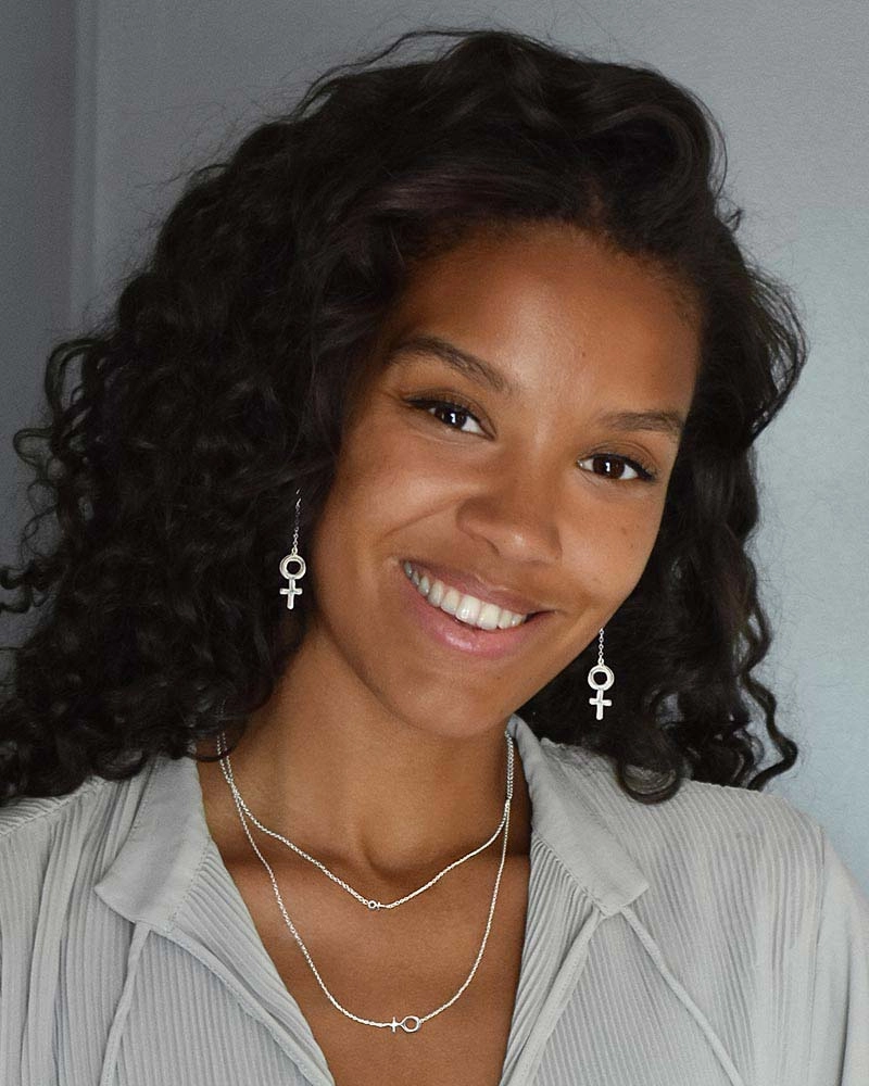 Women Unite är en kollektion från Drakenberg/Sjölin som hyllar kvinnan. Här ser vi deras stilrena kvinnosymbol i ett par hängande örhängen som pendlar vackert tillsammans med bärarens rörelser.