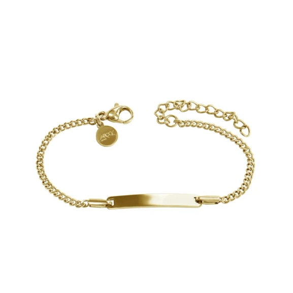 Malte-armbandet från AROCK.young är ett tidlöst smycke med en glänsande pansarlänk och en liten, avlång bricka framtill. Brickan kan graveras hos valfri gravör för att bli en personlig present. Armbandet är tillverkat av kirurgiskt rostfritt stål med en 14 karat guld PVD-beläggning, vilket gör det allergivänligt och hållbart för både lek och daglig användning. Smyckena är inspirerade av AROCK’s klassiska signaturstil men anpassade för barn i åldrarna 5-12 år.