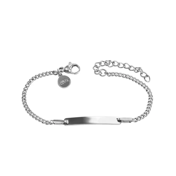 Malte-armbandet från AROCK.young är ett tidlöst smycke med en glänsande pansarlänk och en liten, avlång bricka framtill. Brickan kan graveras hos valfri gravör för att bli en personlig present. Tillverkat av kirurgiskt rostfritt stål, är armbandet både allergivänligt och tåligt för lek och daglig användning. Inspirerade av AROCK’s klassiska stil, är smyckena anpassade för barn i åldrarna 5-12 år.